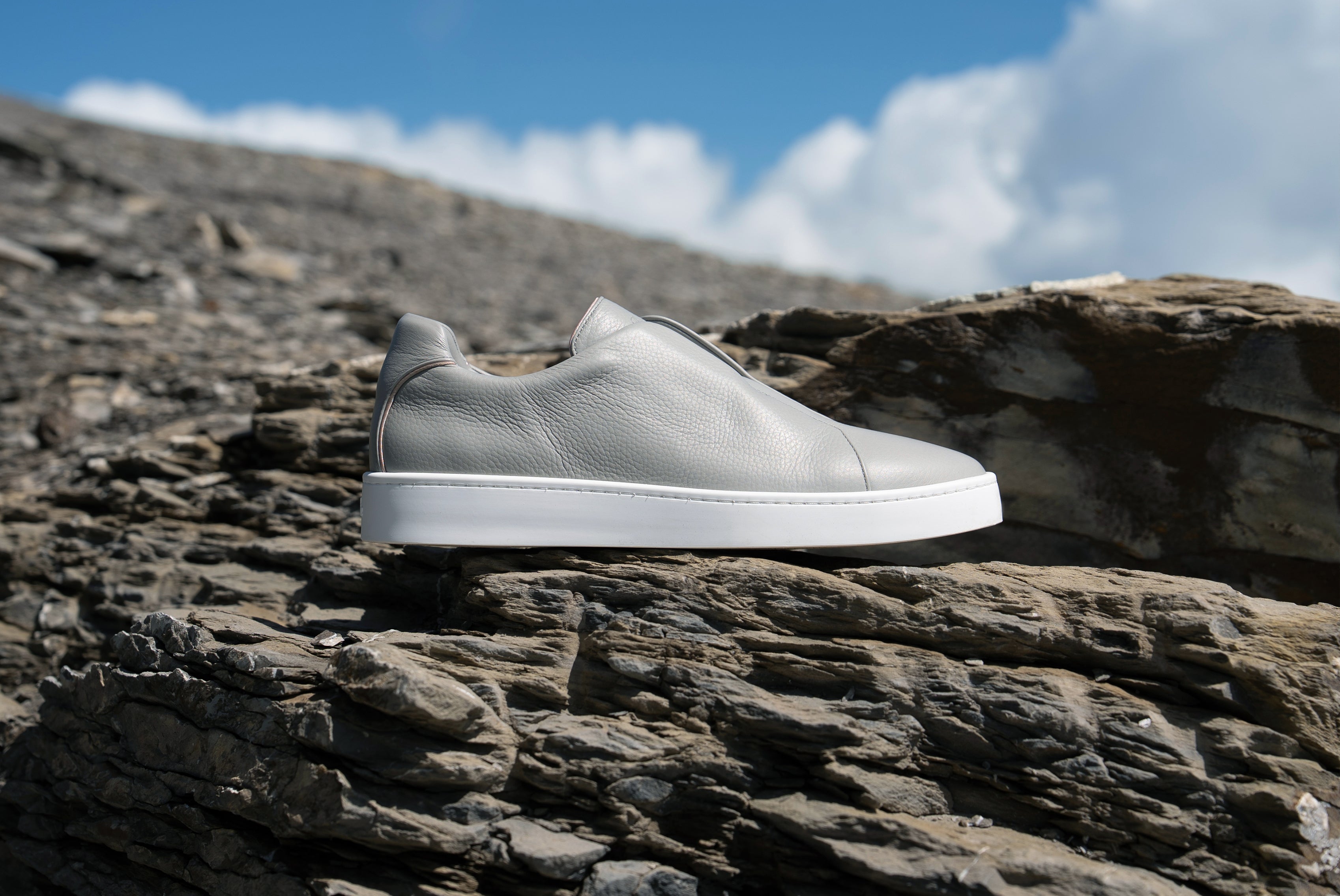 Sculpted simplicity, elevated by rich suede and supple grain leather. A seamless silhouette, traced with golden accents, capturing the ease and confidence of modern luxury.