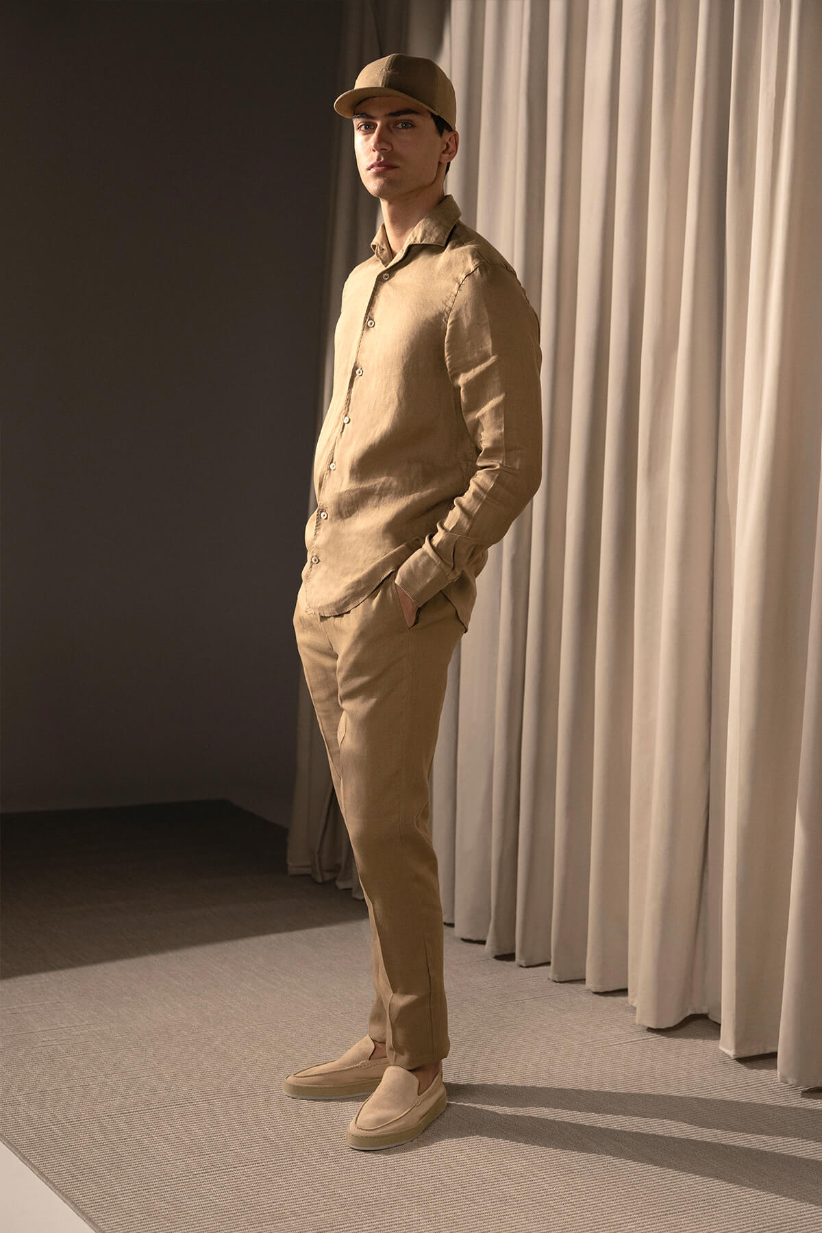 Dark Taupe Linen Baseball Cap